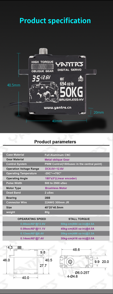 YANTRS 50KG 3S 12.6V helical High pressure Waterproof Brushless Servo For Rc Car 1/5 1/8 1/10 Crawler Buggy(Control Angle 180°)